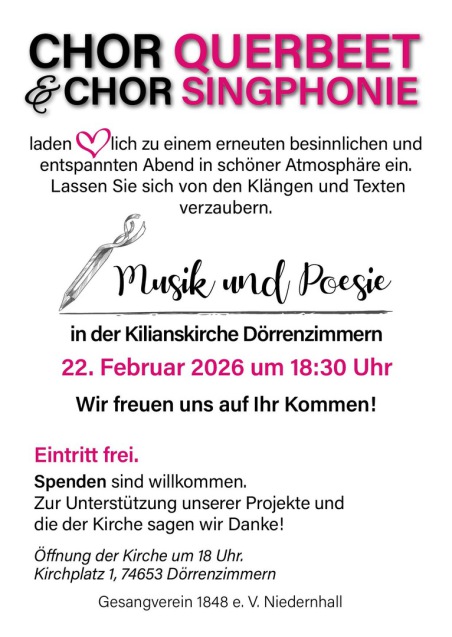 Der Vorverkauf ist super angelaufen und es gibt nur noch wenige Restkarten. Fragen Sie gerne nach bei den Vorverkaufsstellen oder unter karten@chor-querbeet / 20.04.2023 14:55