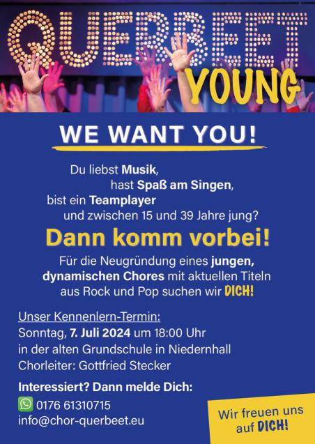 An zwei Konzertabenden haben wir, der Chor Querbeet unser Publikum mit neuen Songs, Lyrics, Choreographien und instrumentalen Solostücken unseres Chorleiters begeistert. Gemeinsam mit unserer Profiband brachten wir die Stadthalle Niedernhall zum Beben. Auch unsere Solisten konnten das Publikum emotional und mitreißend bewegen.